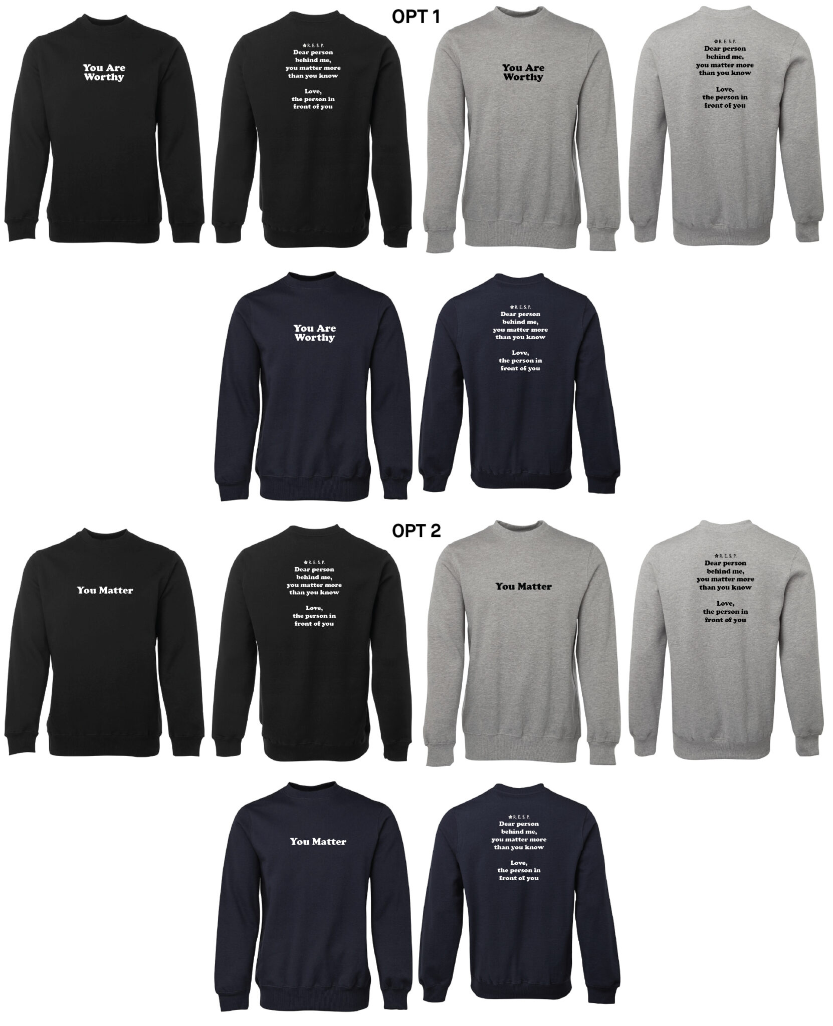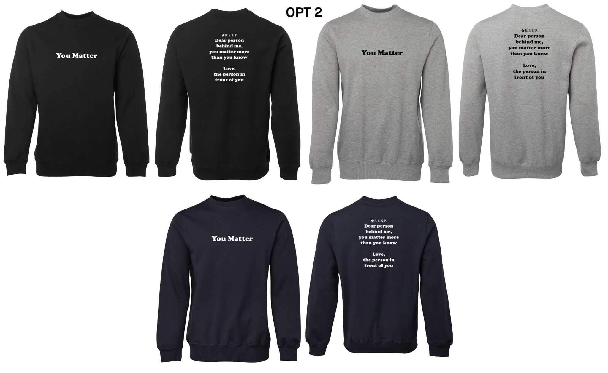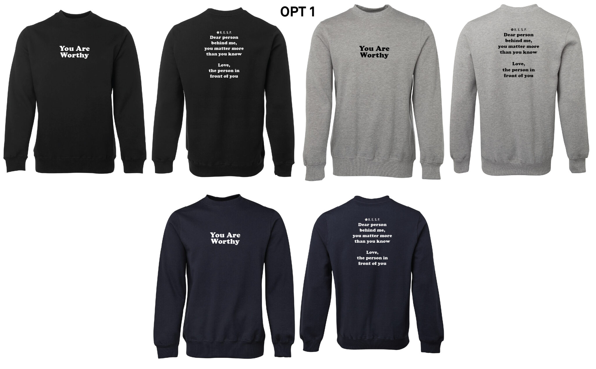 Adults Crew Jumper – Black, Grey Marle or Navy – with printed logos