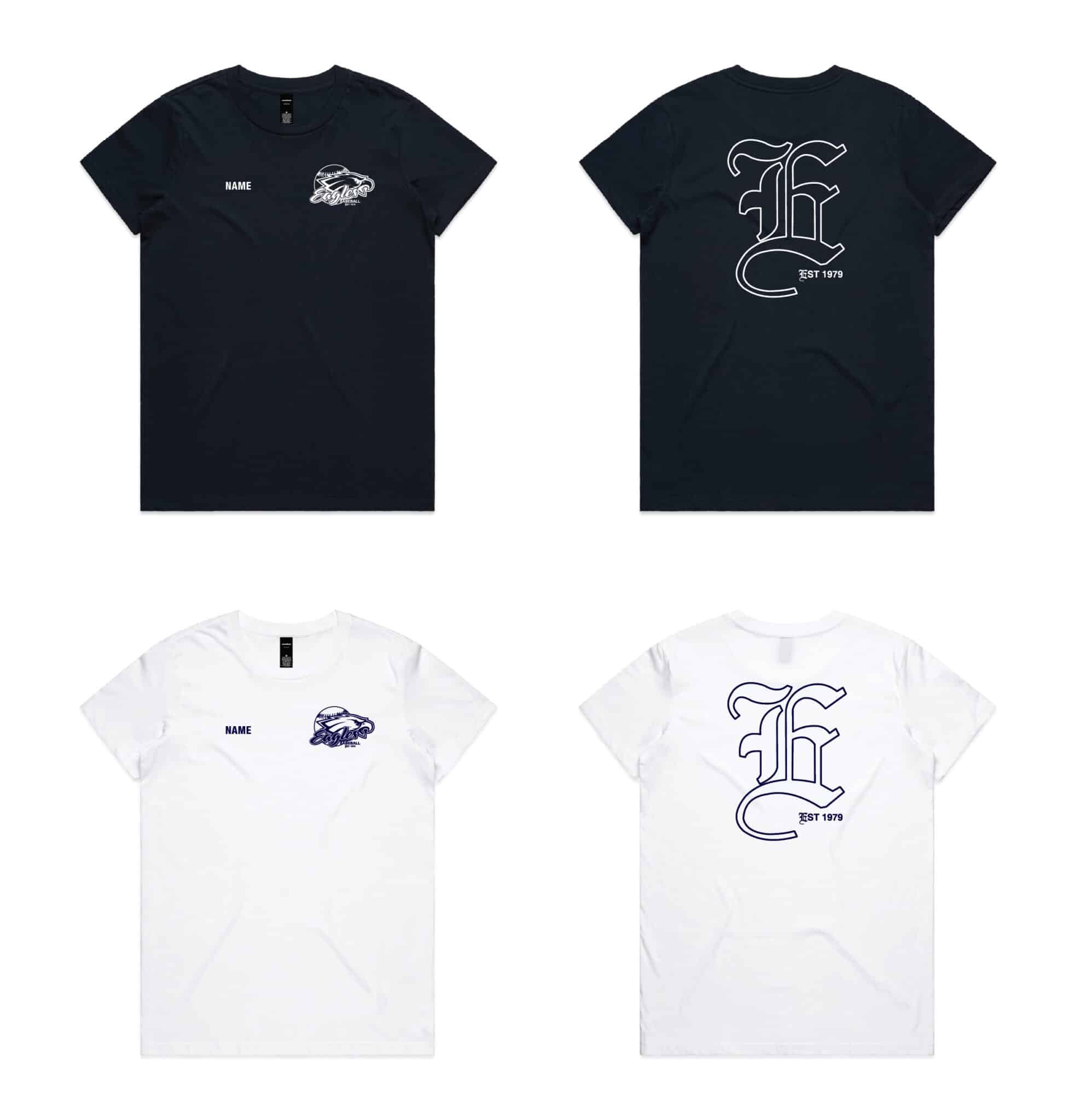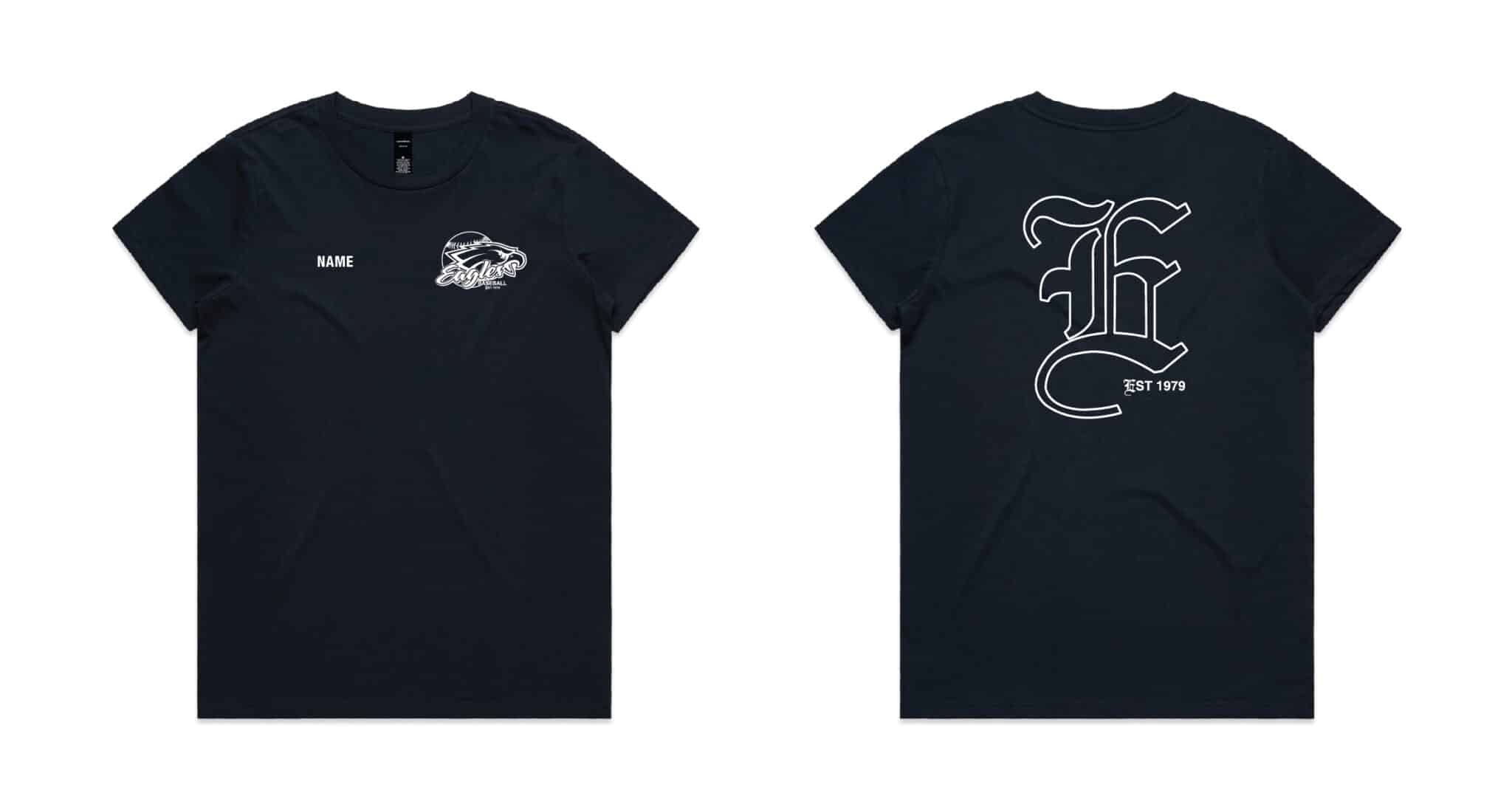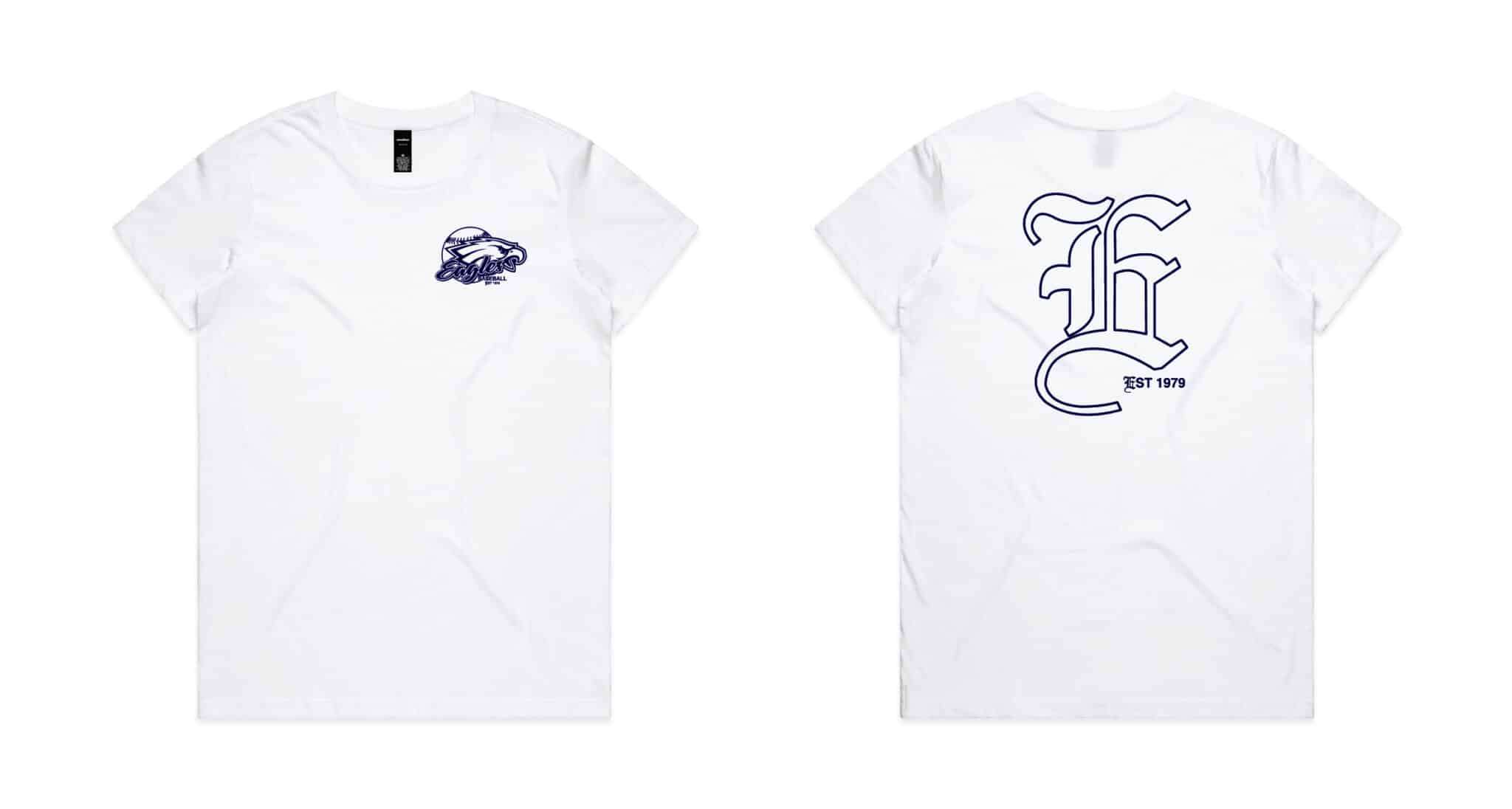 Ladies Maple T-Shirt – Navy or White – with printed logos
