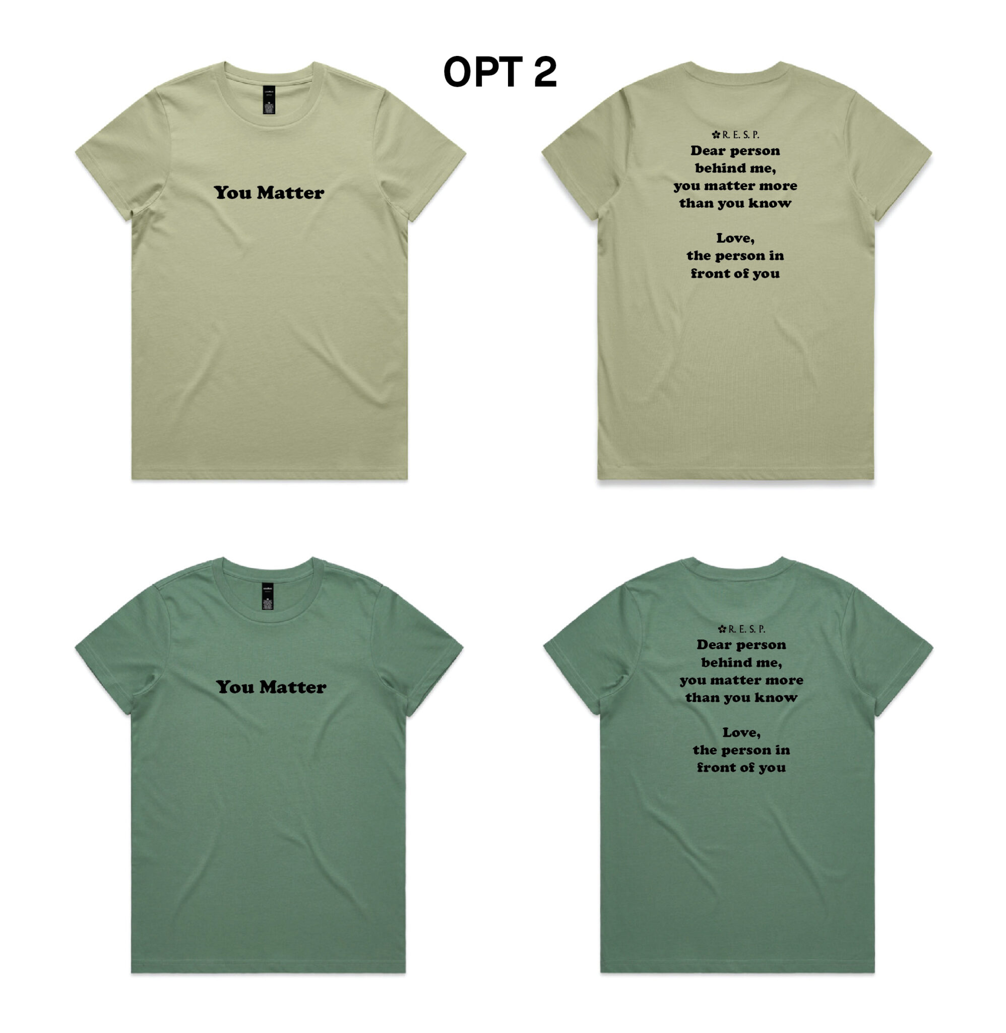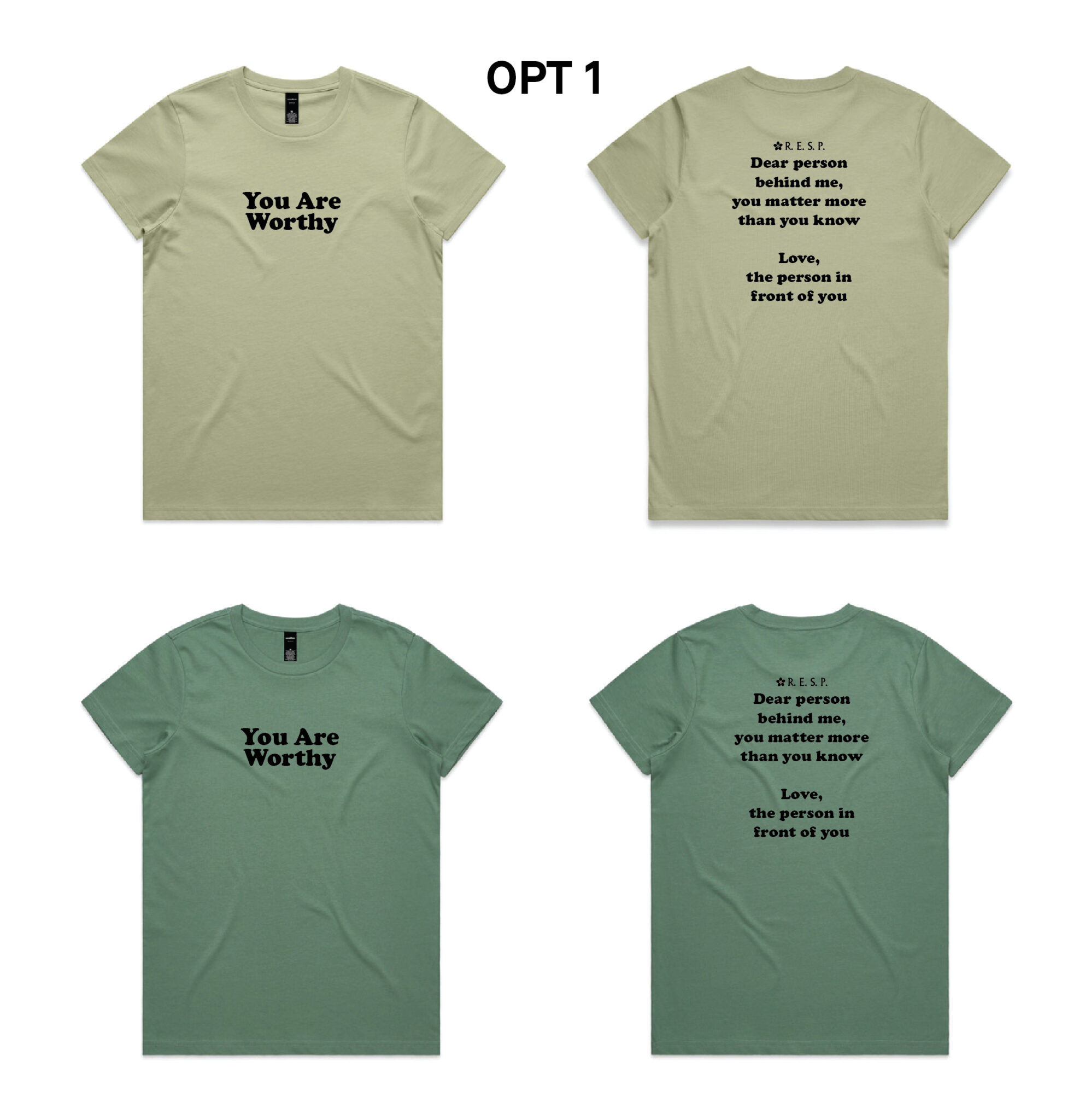 Ladies Maple Tee – Sage or Pistachio – with printed logos