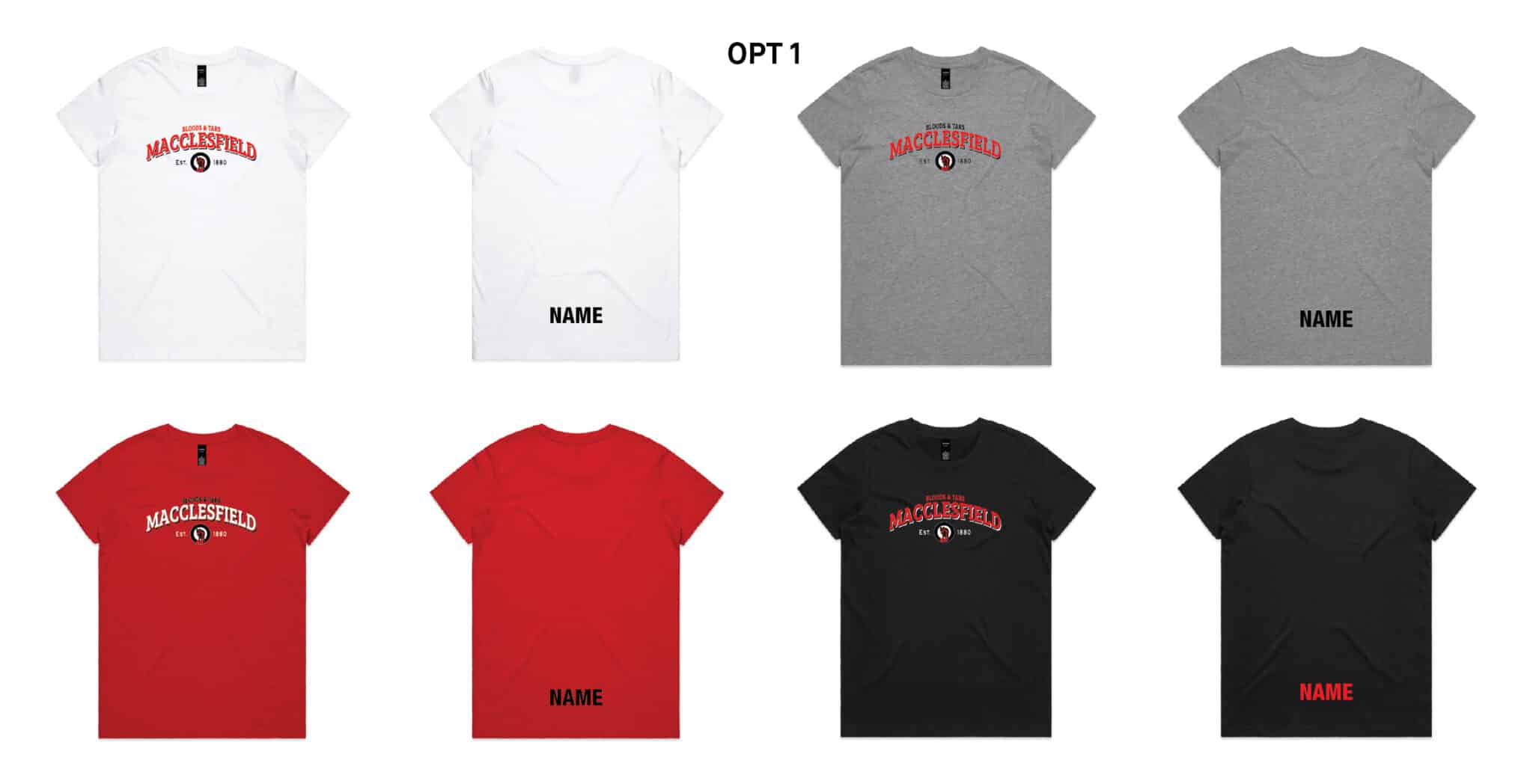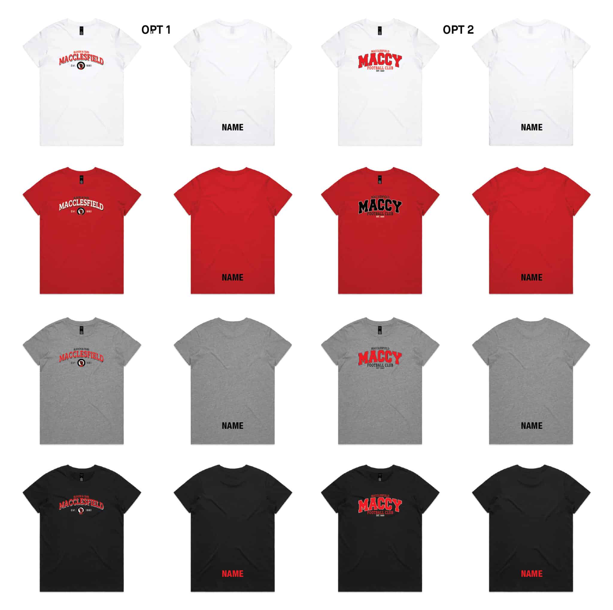 Ladies Maple T-Shirt – Black, Grey Marle, Red or White – with printed logos