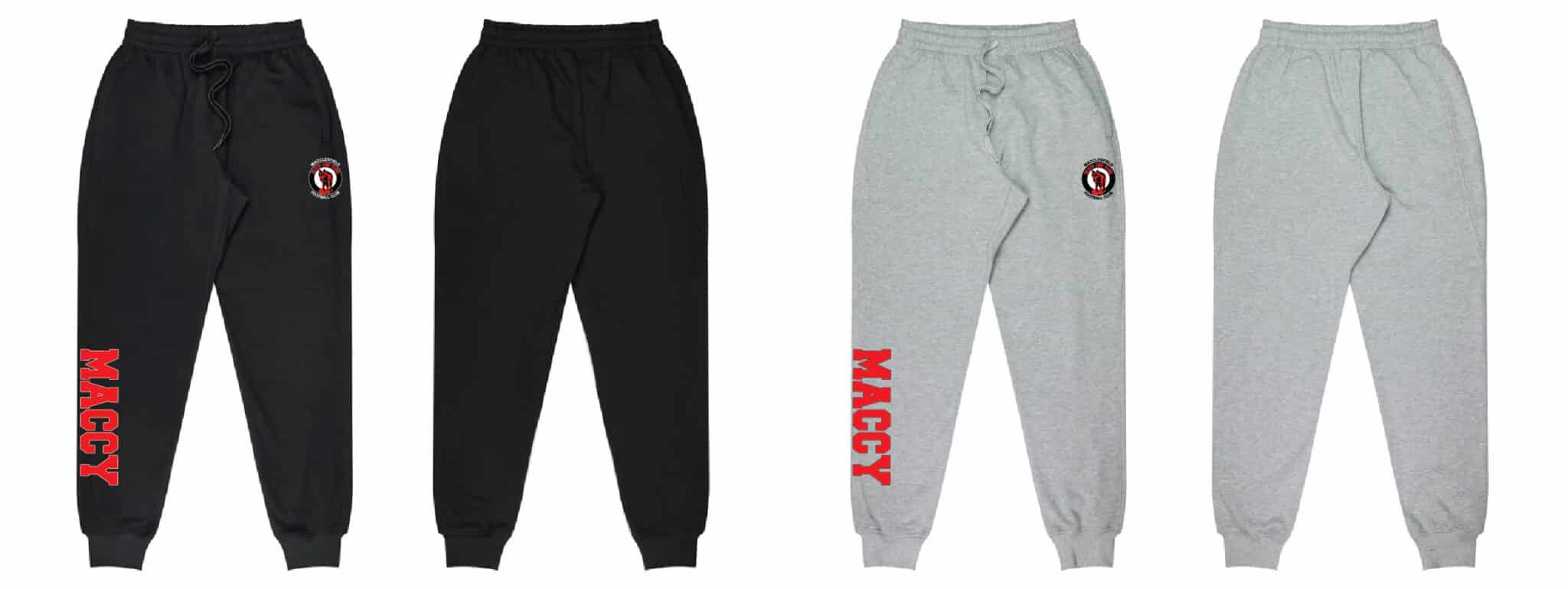 Unisex Tapered Trackpants – Black or Grey Marle – with embroidered & printed logos